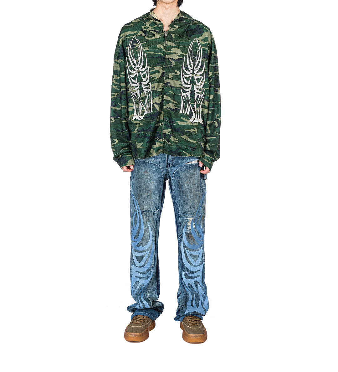 WINGED WAVELENGTH CAMO ZIP UP HOODIE OLIVE