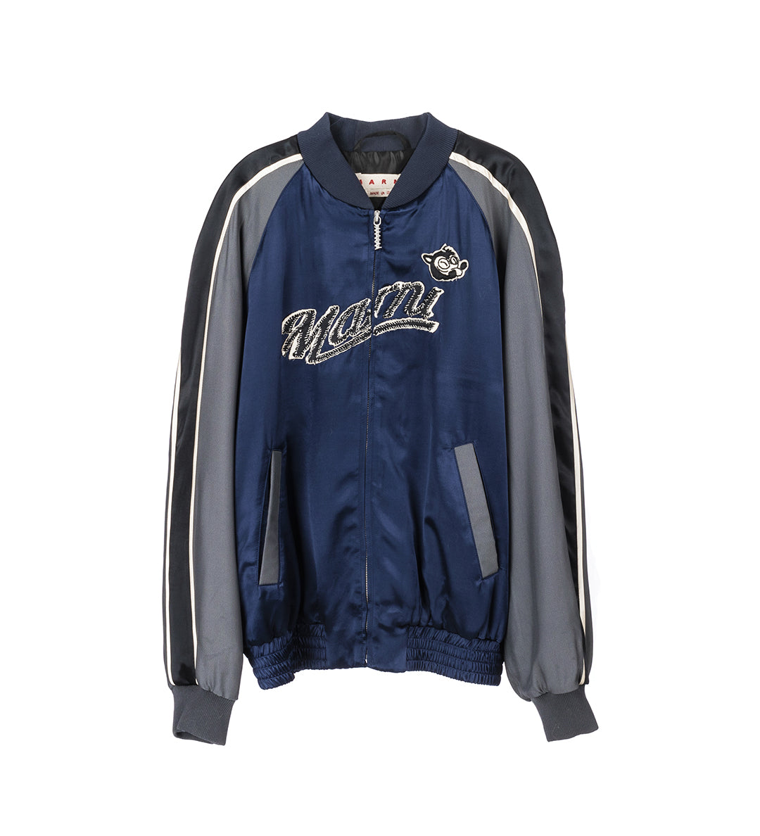 MARNI BLOCK BOMBER WITH PATCH DEEP BLUE