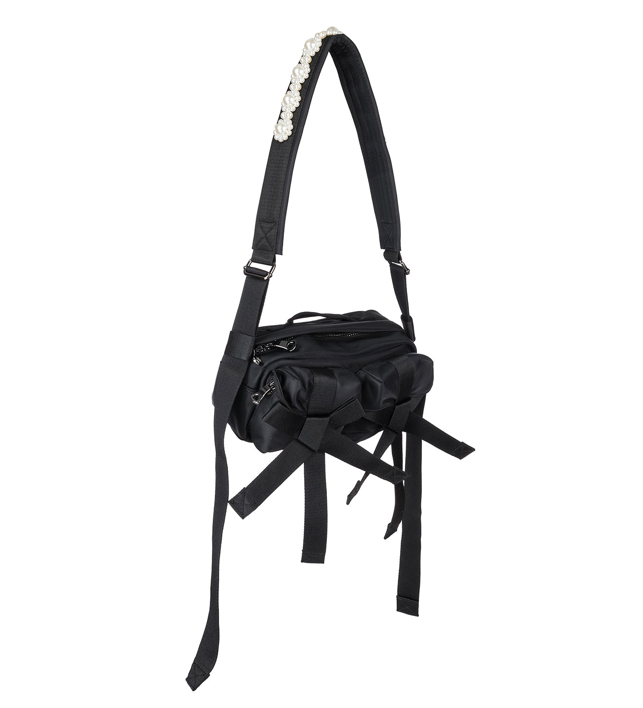 SIMONE ROCHA CLASSIC BOW CROSSBODY BAG W/EMB BLACK/PEARL