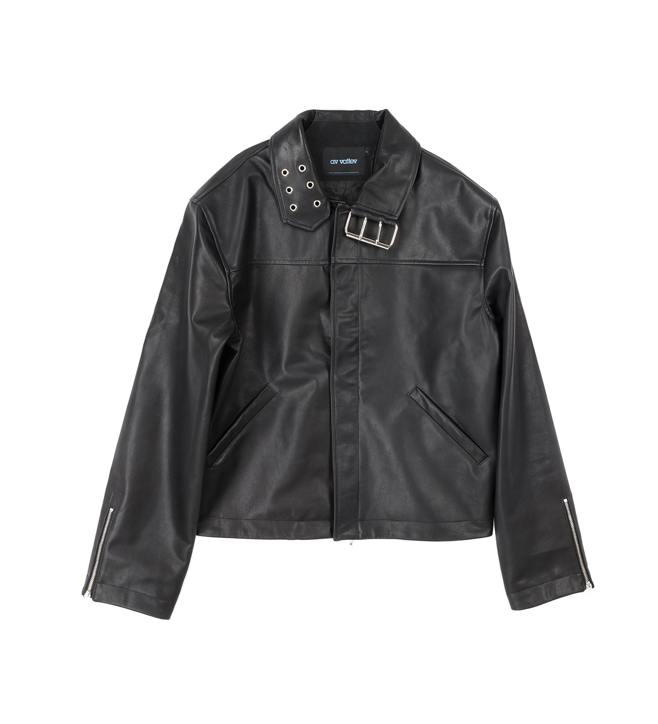 AV VATTEV COLLAR BELT LEATHER JACKET BLACK