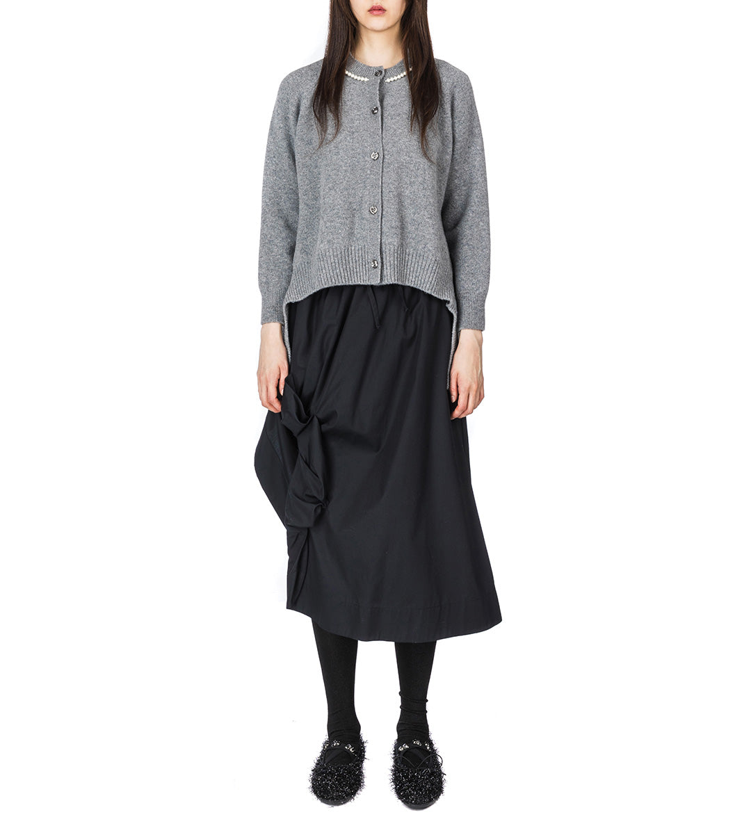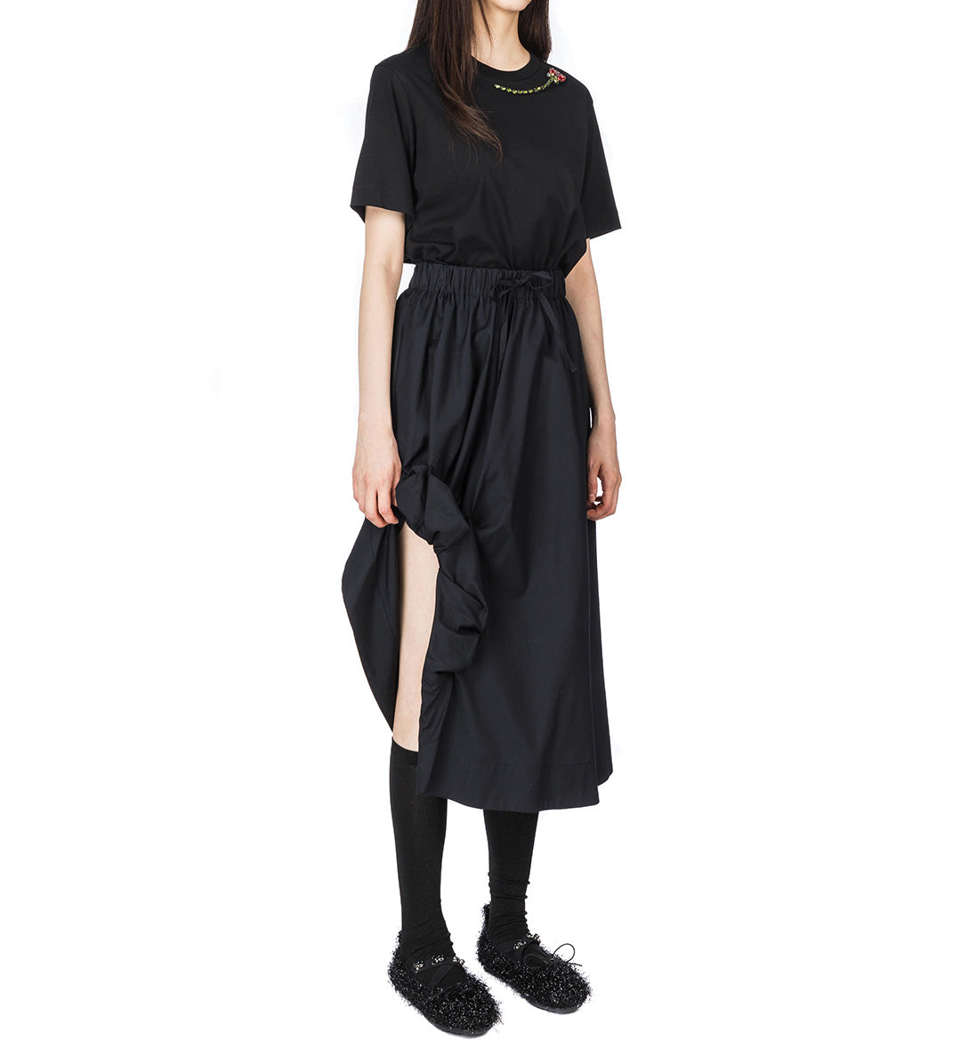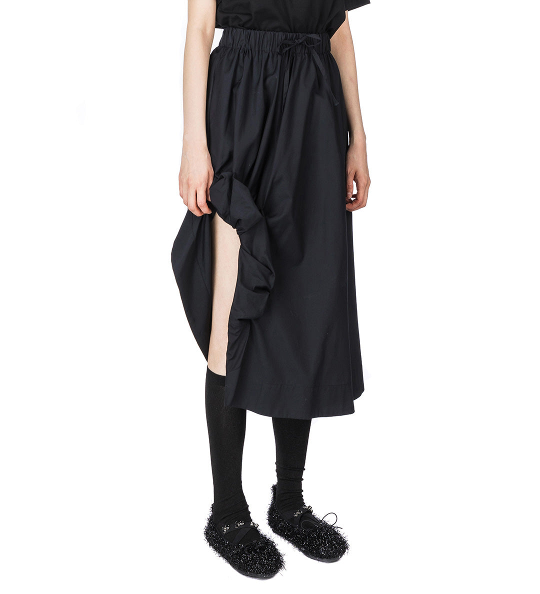 SIMONE ROCHA ELASTICATED GATHERED SLIT DETAIL SKIRT BLACK