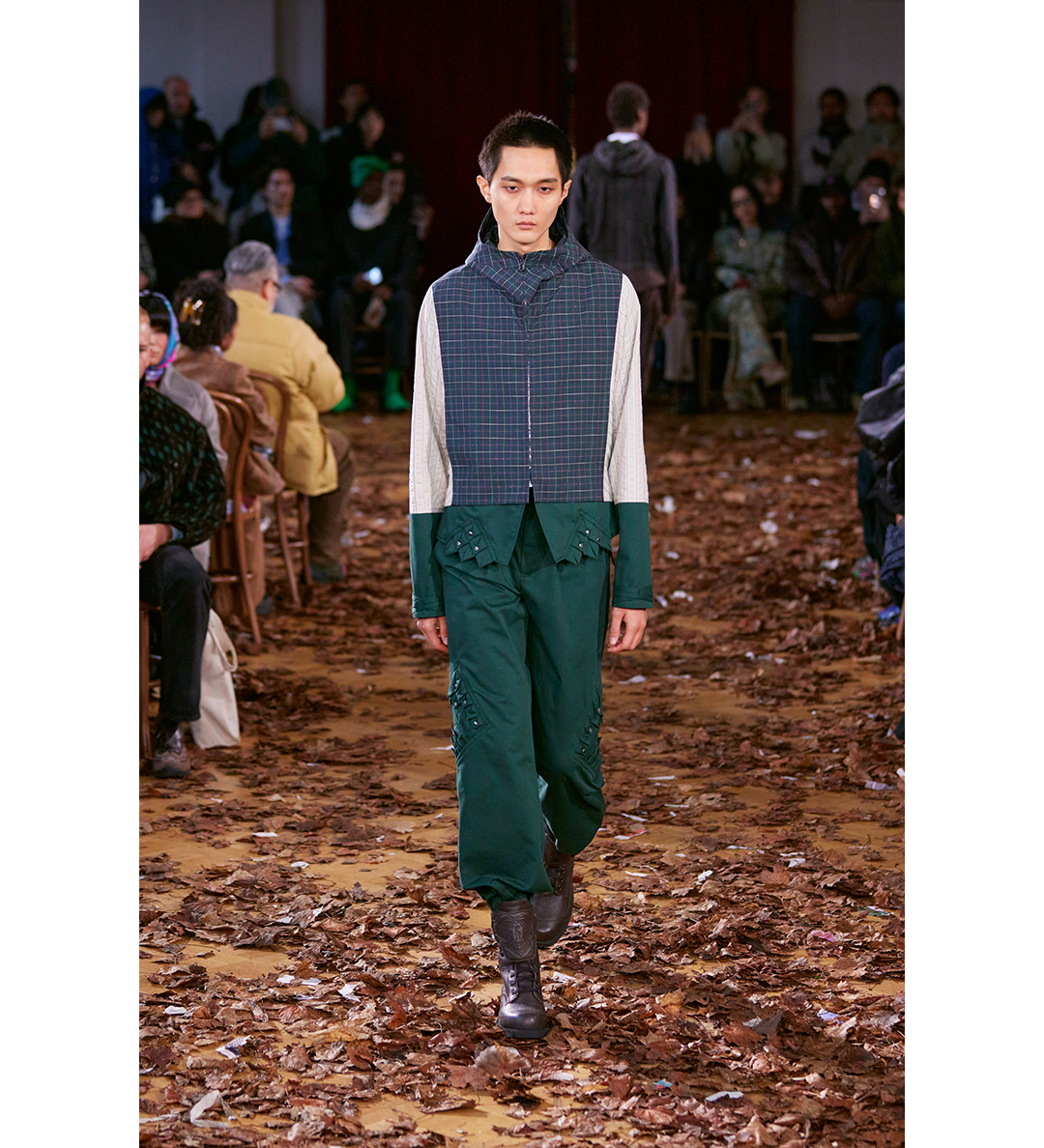 KIKO KOSTADINOV ESTIKE HOODED JACKET FOREST CHECK/IVORY STRIPE