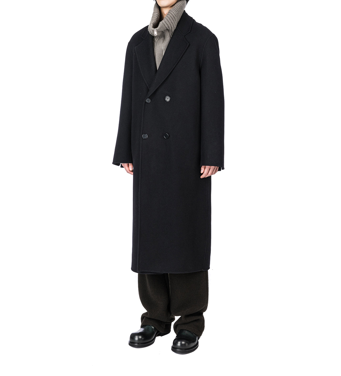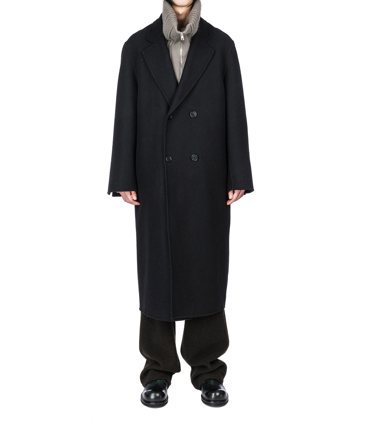 META CAMPANIA COLLECTIVE HUGO LONG DB BOILED WOOL COAT BLACK
