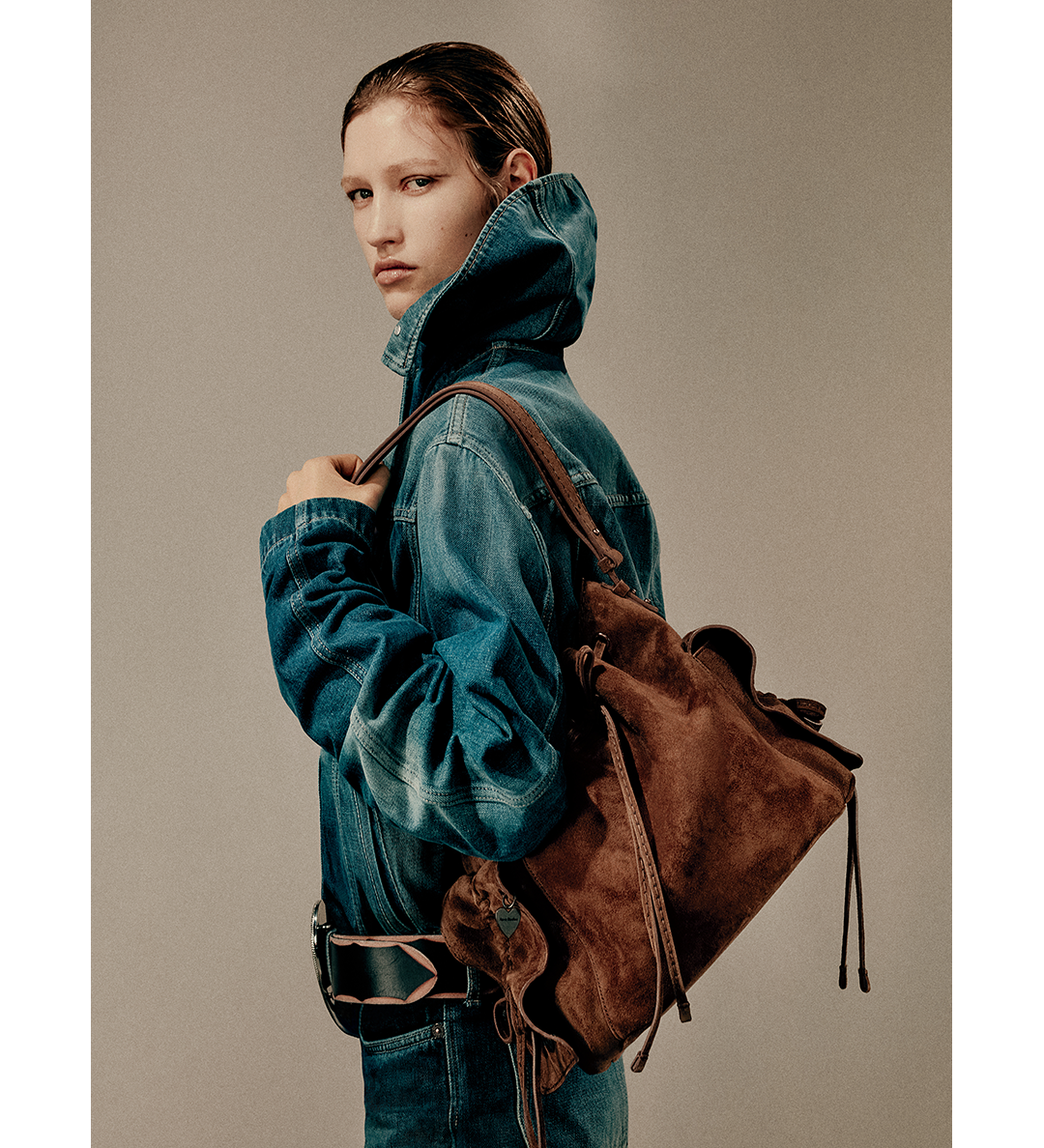 ACNE STUDIOS MULTIPOCKET BUCKET SUEDE COGNAC BROWN