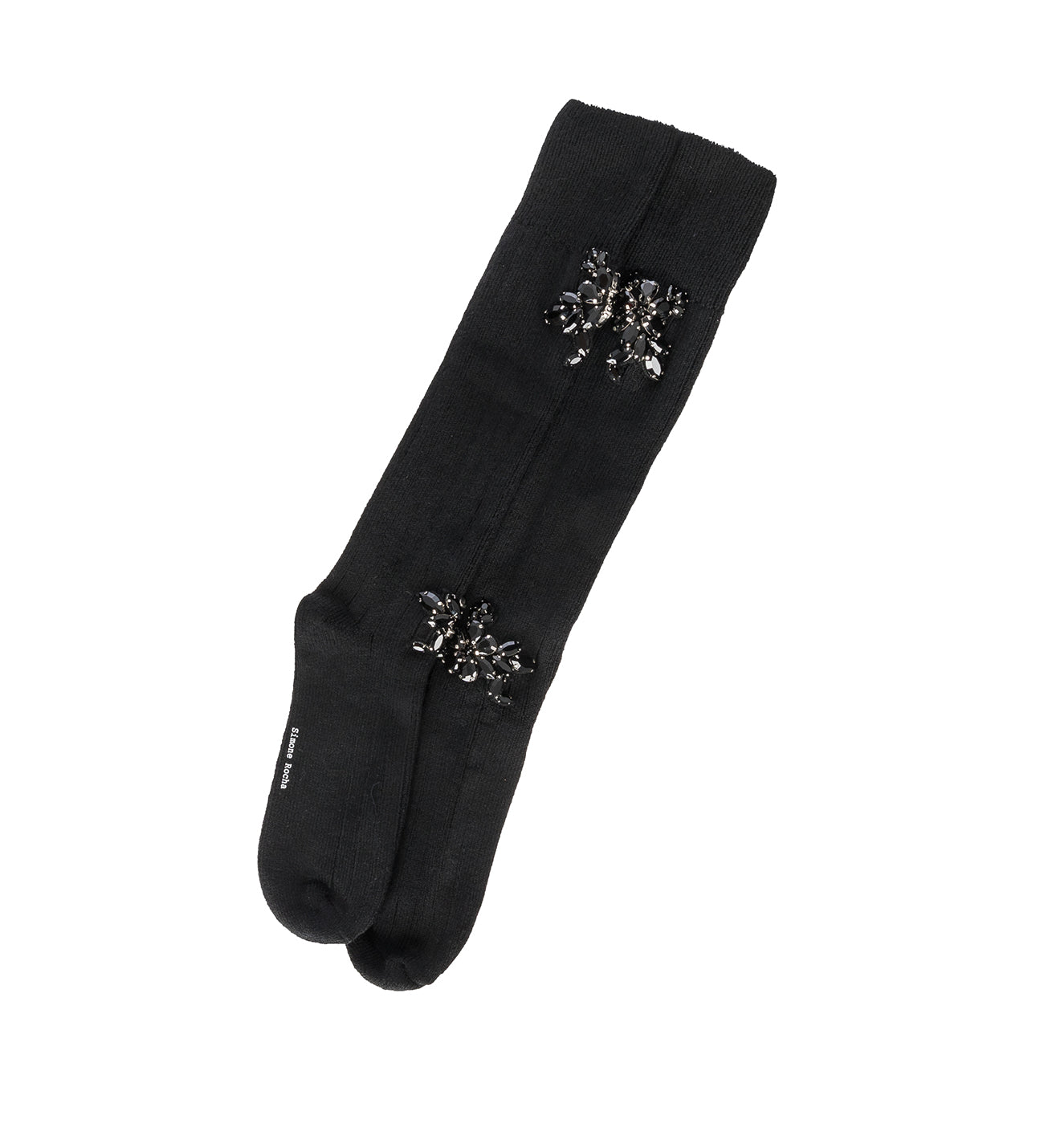 SIMONE ROCHA PEARL AND CRYSTAL ROSE KNEE SOCK BLACK/JET