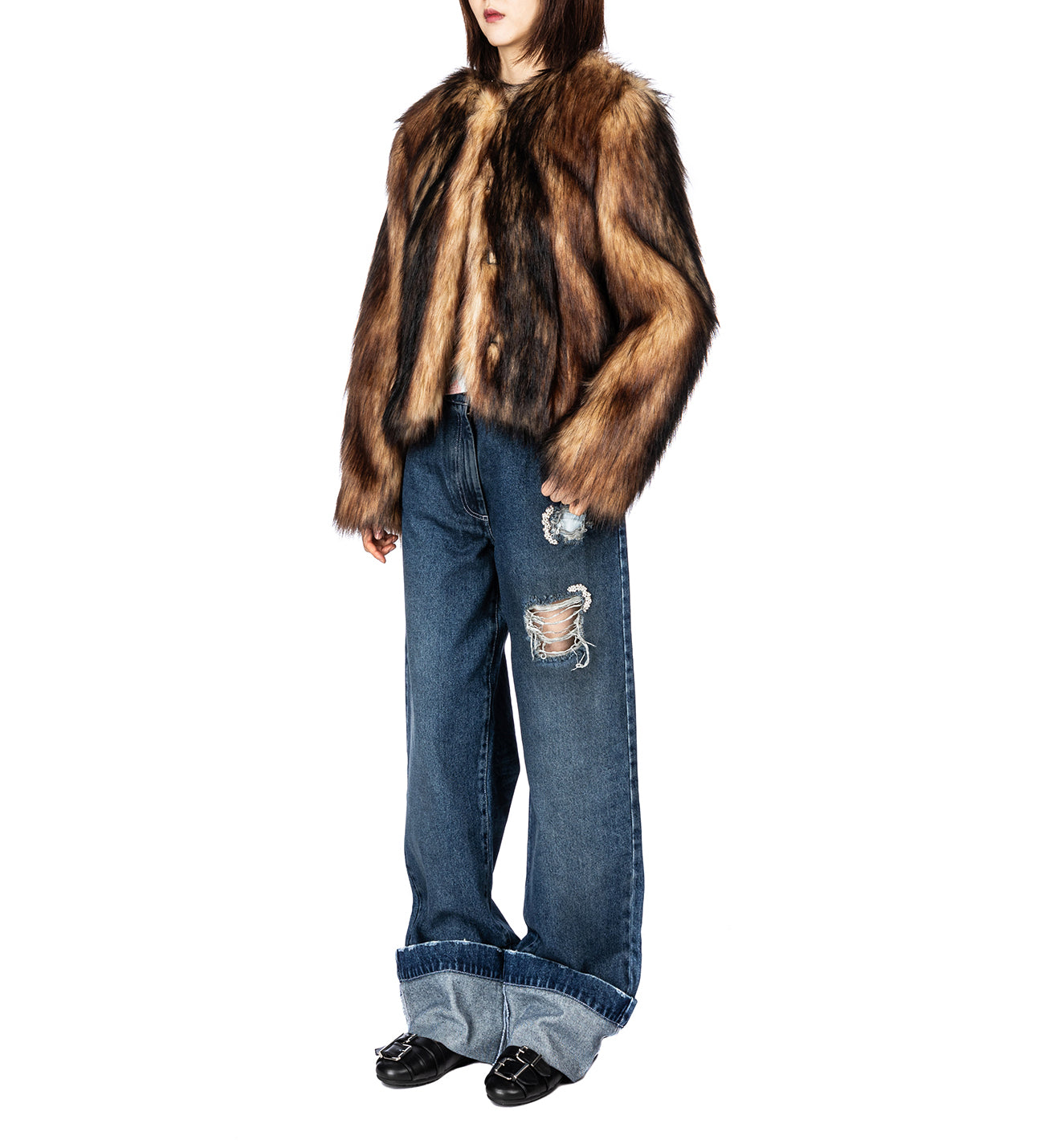 SCULPTED FAUX FUR FRAY JACKET NATURAL