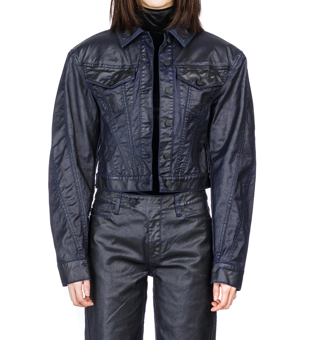 MUGLER WAXED DENIM JACKET MIDNIGHT BLUE / BLACK