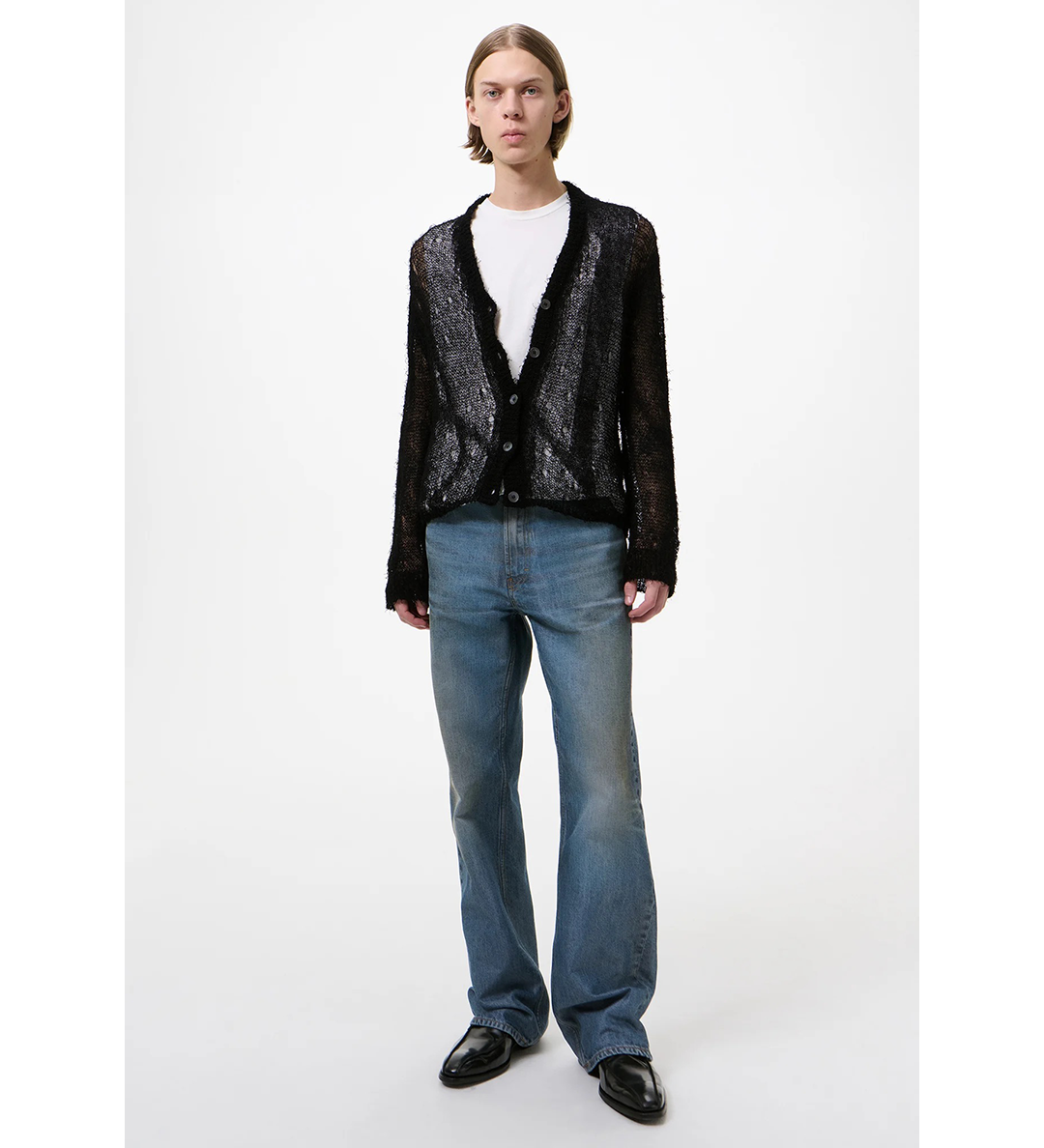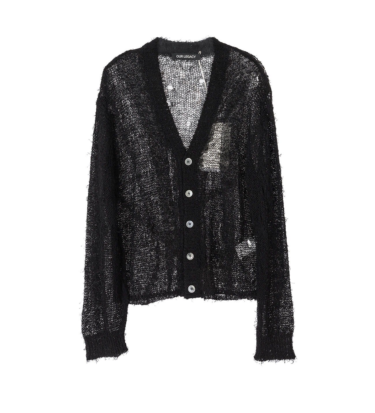 OUR LEGACY ACADEMY CARDIGAN BLACK RAGGED OPEN LINEN