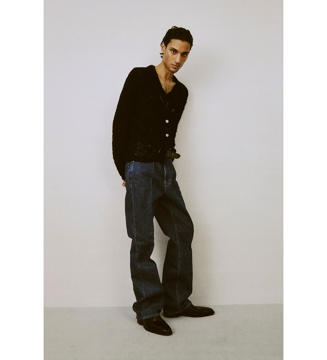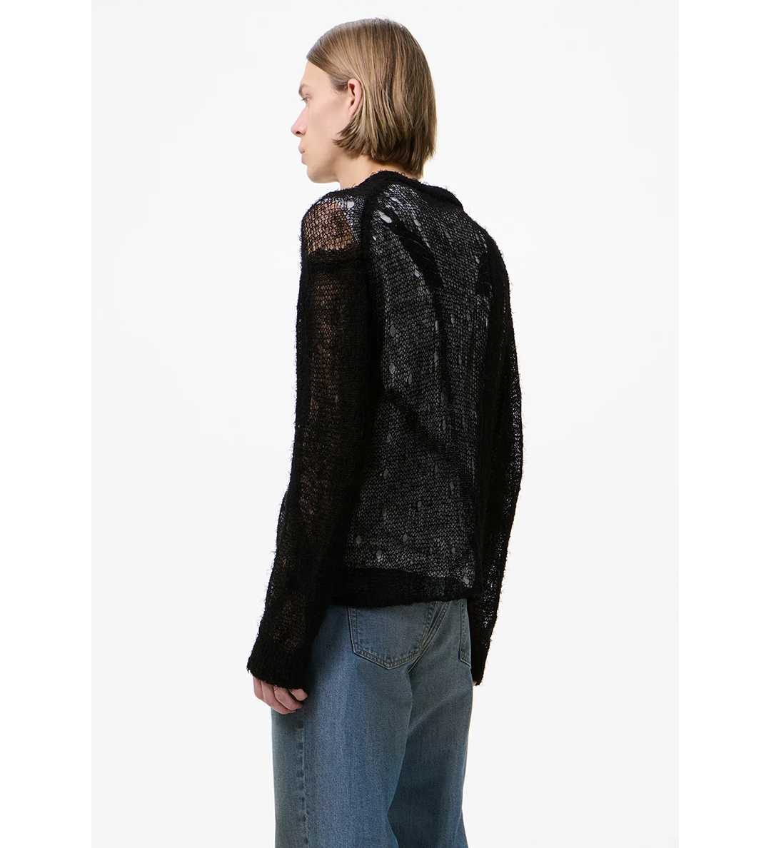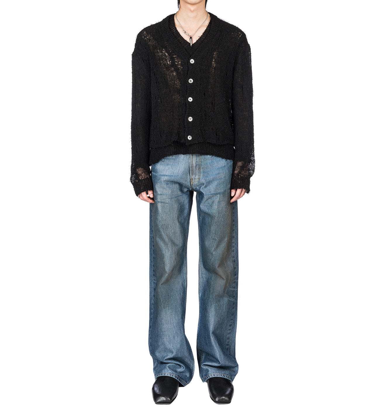 ACADEMY CARDIGAN BLACK RAGGED OPEN LINEN