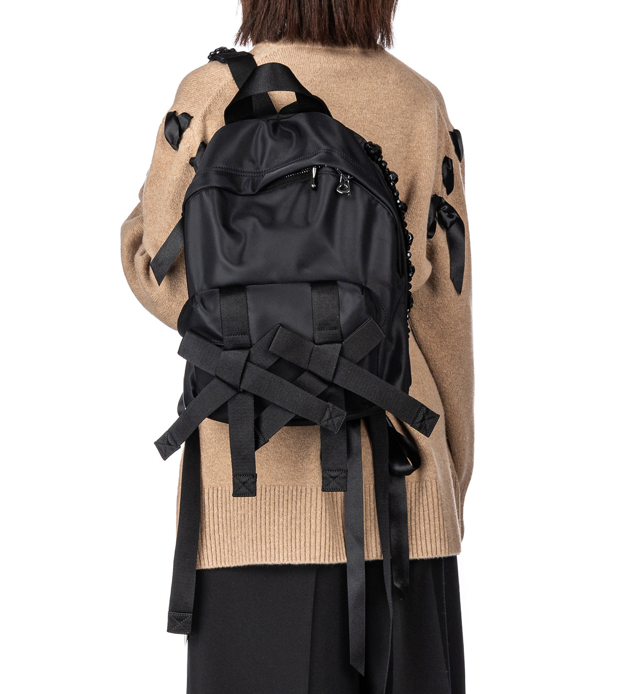 SIMONE ROCHA BOW FRONT BACKPACK W/EMB BLACK/JET