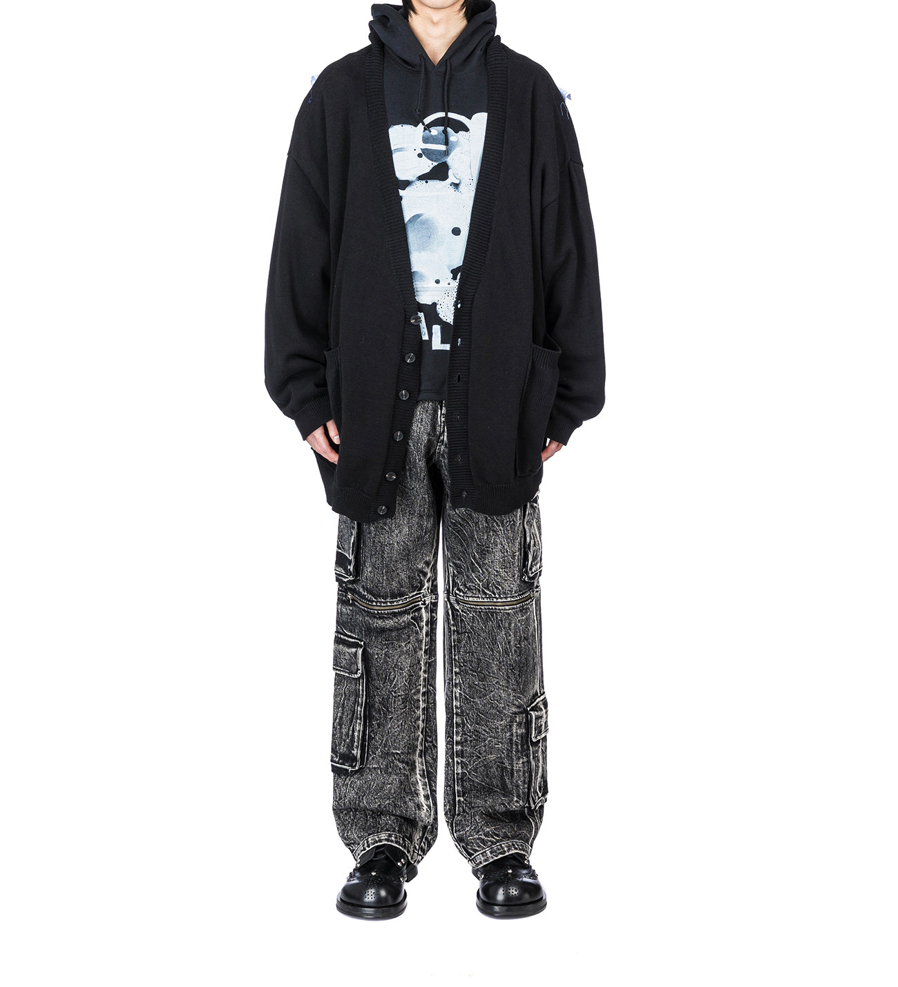CARGO PANTS W ZIP POCKET WASH BLACK