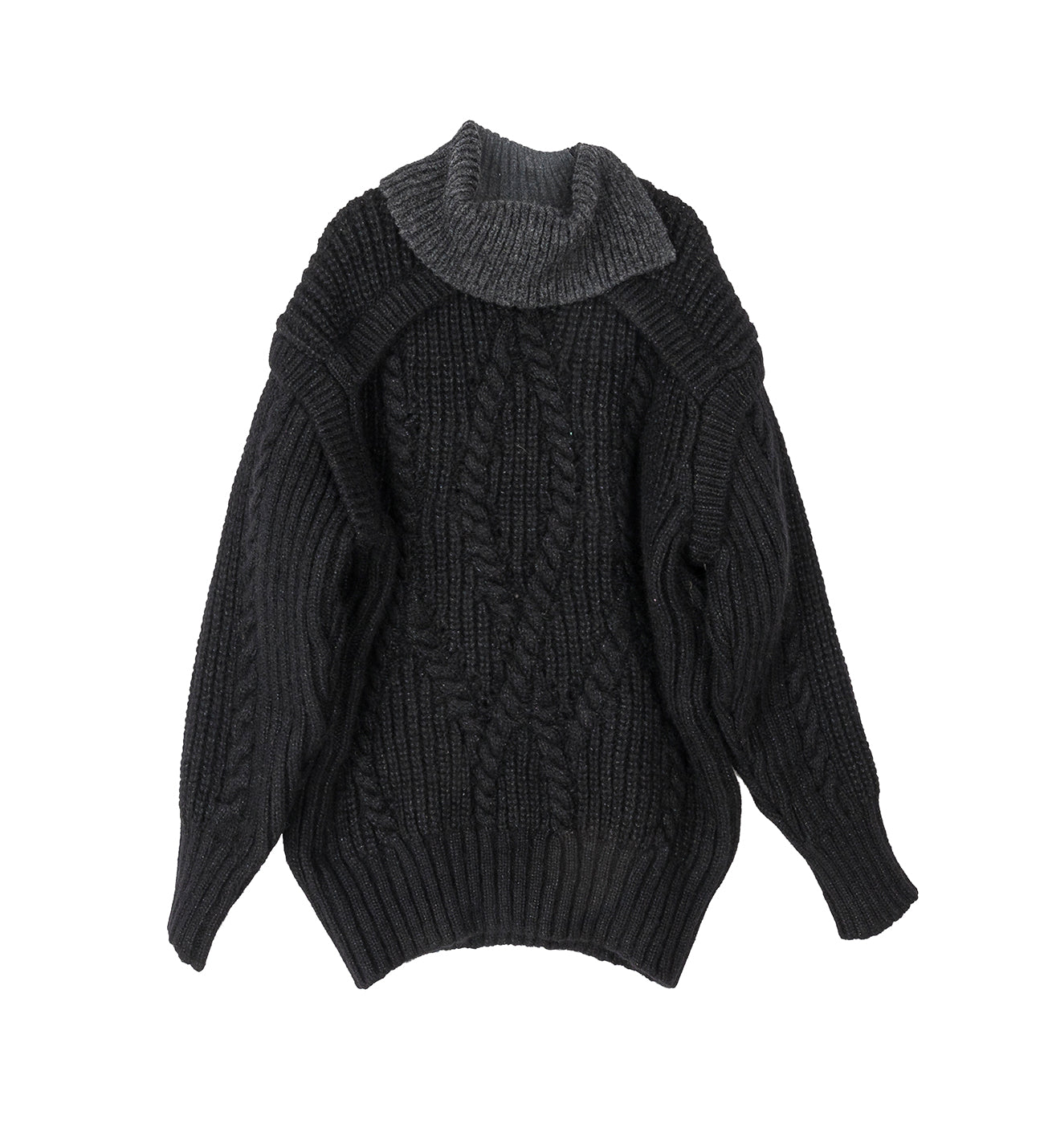 CONTRAST HIGH NECK CHUNKY KNIT JUMPER BLACK/CHARCOAL