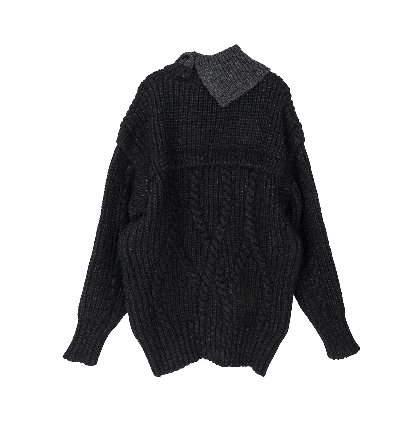 SIMONE ROCHA CONTRAST HIGH NECK CHUNKY KNIT JUMPER BLACK/CHARCOAL
