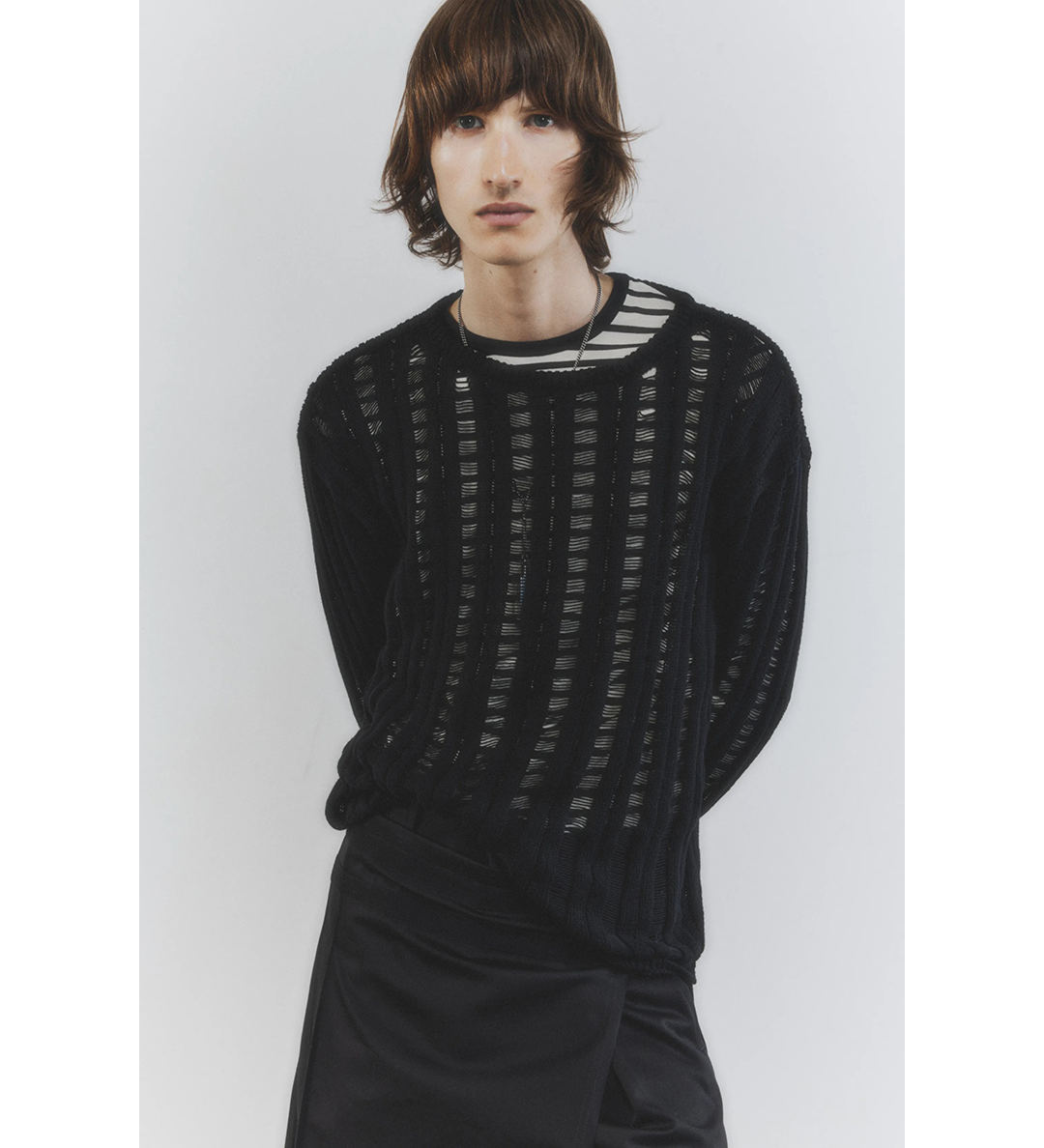 ANN DEMEULEMEESTER DANIAL LADDER STITCH OVERSIZE SWEATER BLACK