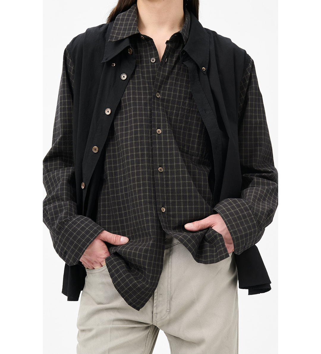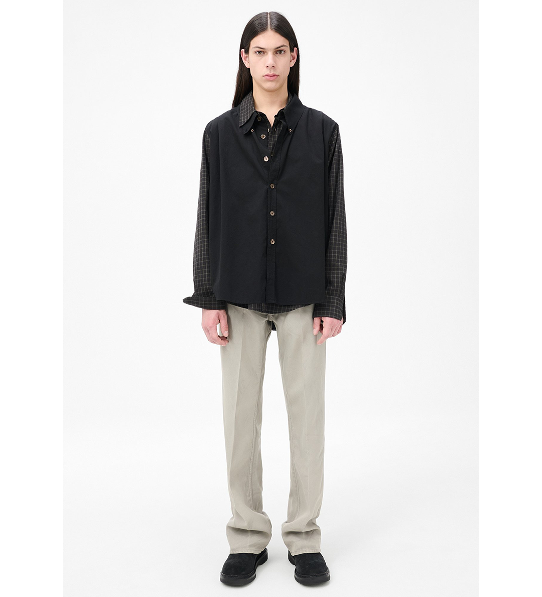 DOUBLE BORROWED SHIRT BLACK FAUX LUMBERJACK CHECK