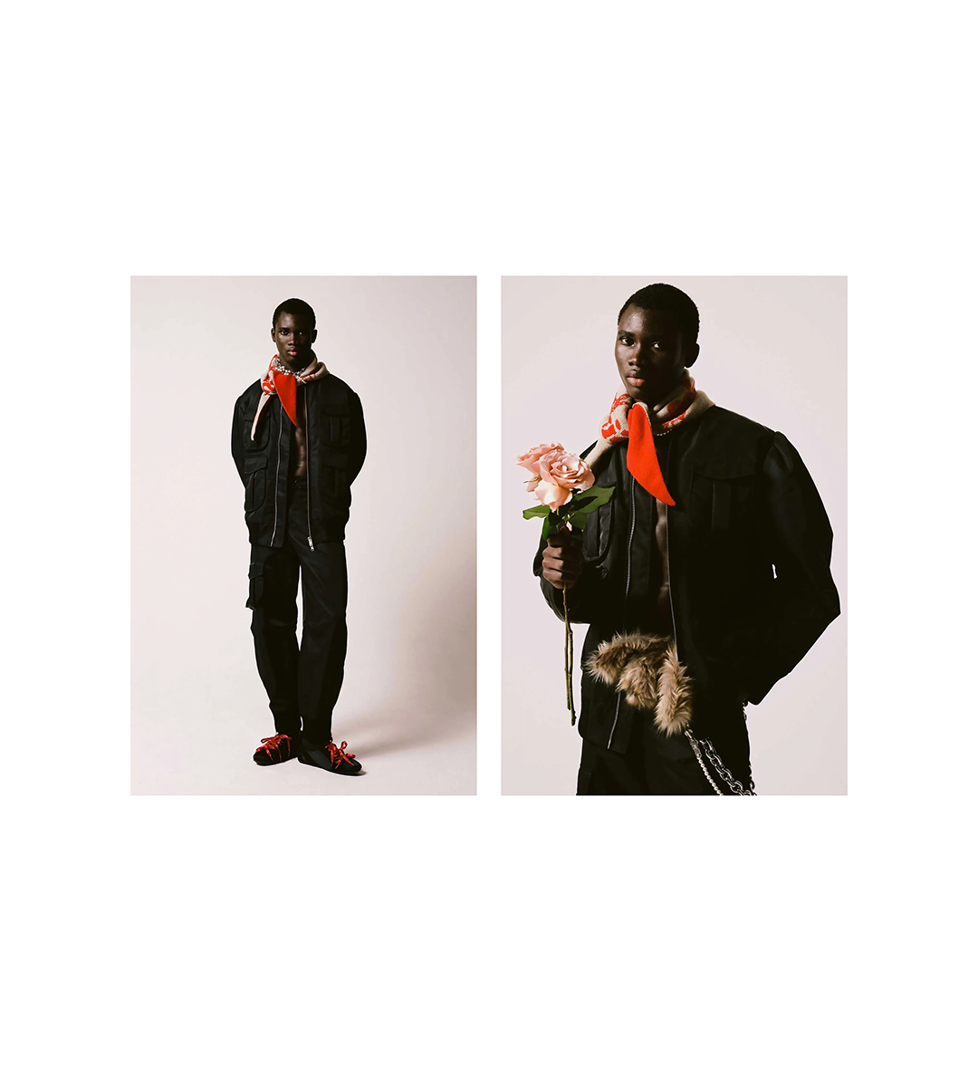 SIMONE ROCHA GRAPHIC LOGO KNIT NECKERCHIEF RED/OAT/PEARL