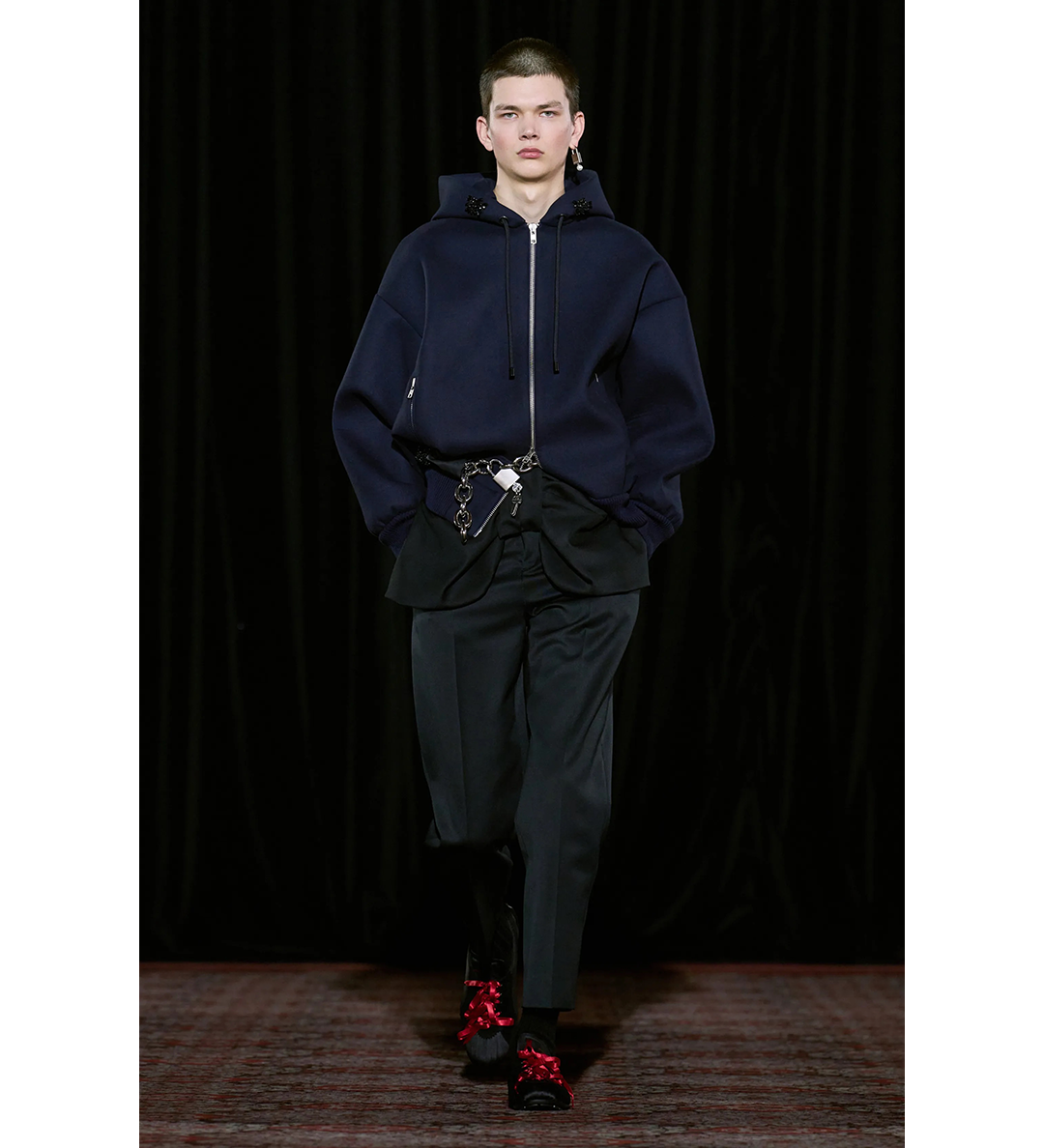 SIMONE ROCHA HOODED ZIP-UP BOMBER JACKET NAVY/JET