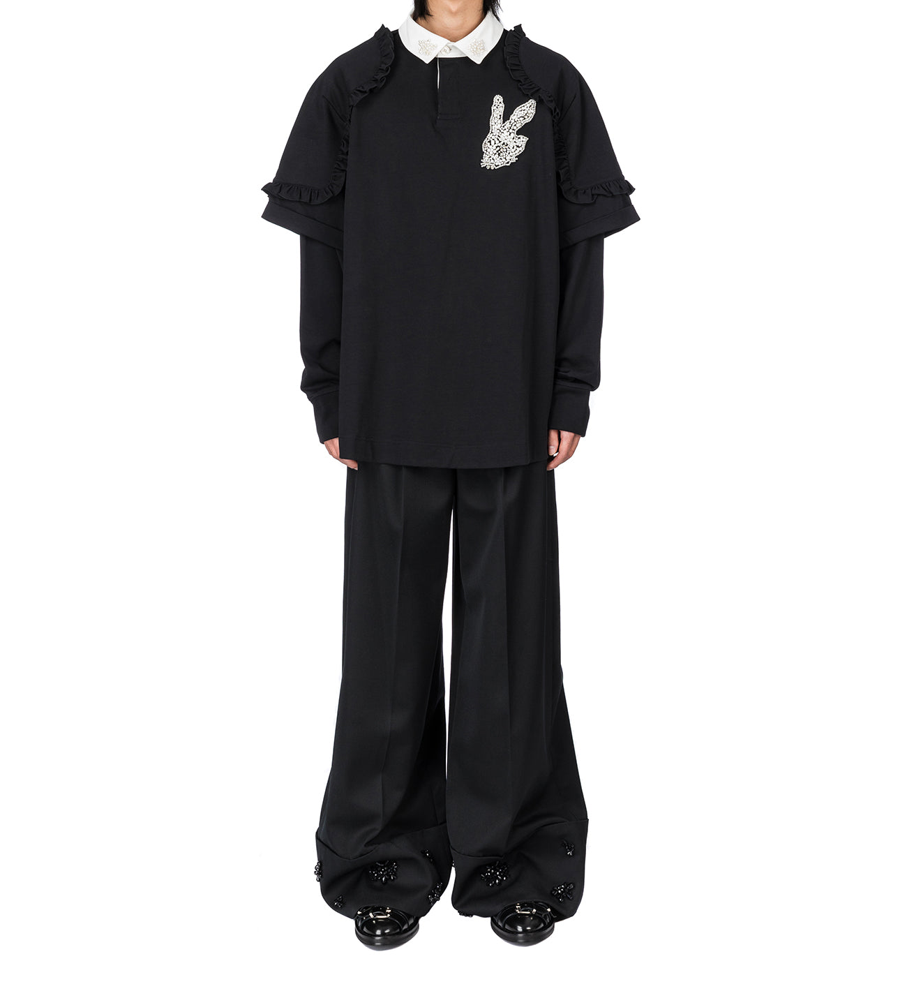 SIMONE ROCHA LAYERED RUFFLE RUGBY SHIRT BLACK/PEARL/CLEAR