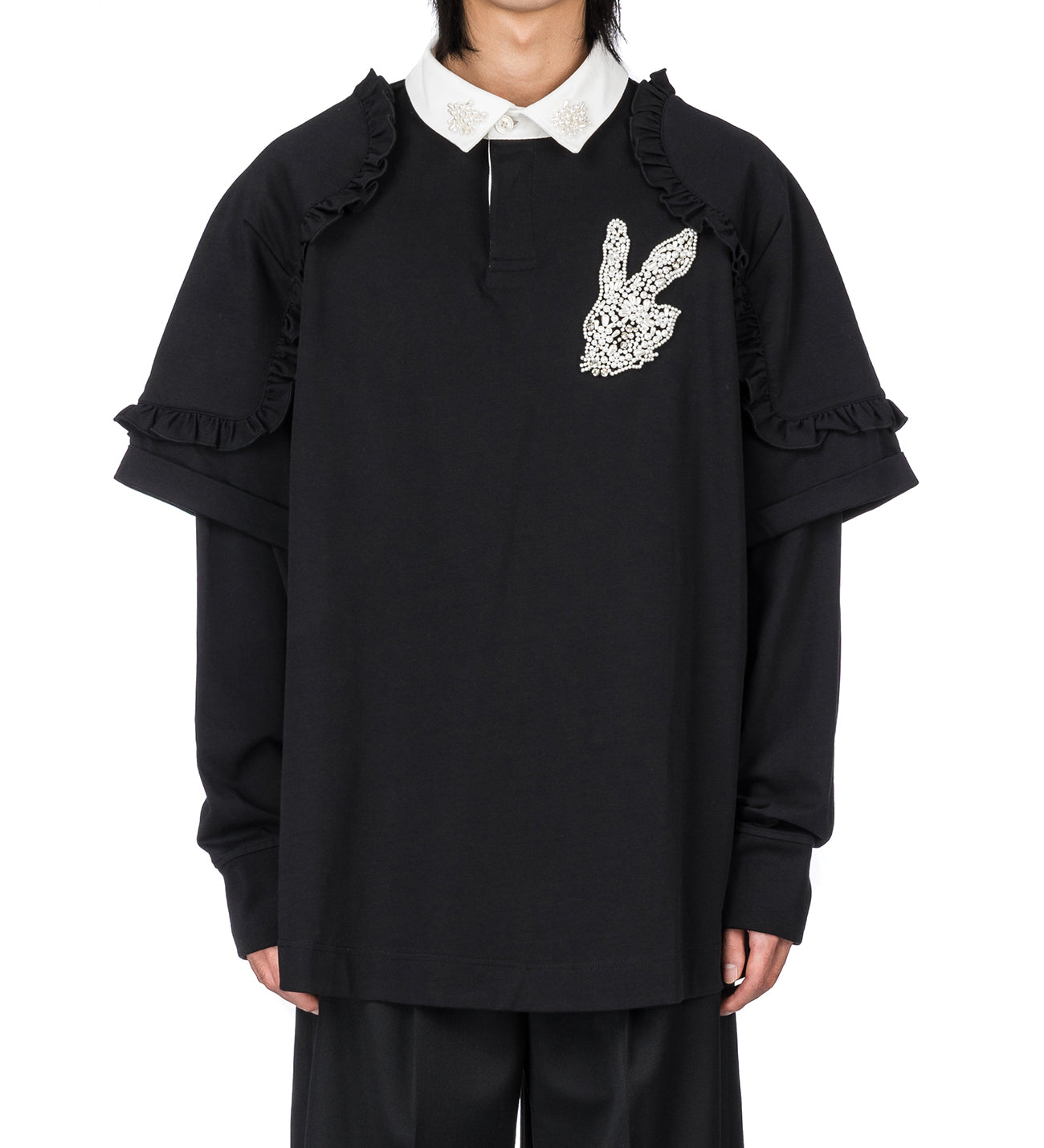 LAYERED RUFFLE RUGBY SHIRT BLACK/PEARL/CLEAR