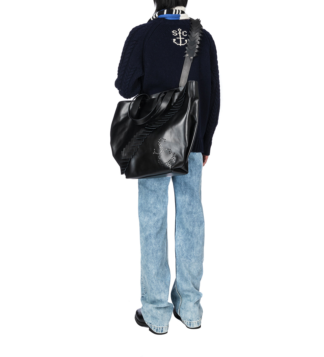 STEFAN COOKE LEATHER PATCH TOTE BLACK