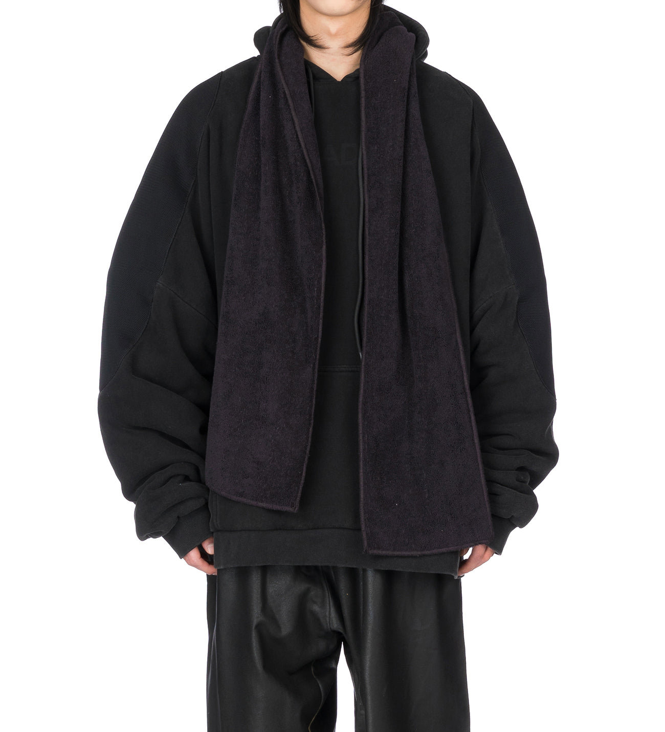 ARNODEFRANCE MESH SHOULDER TOWEL HOODIE WASHED BLACK