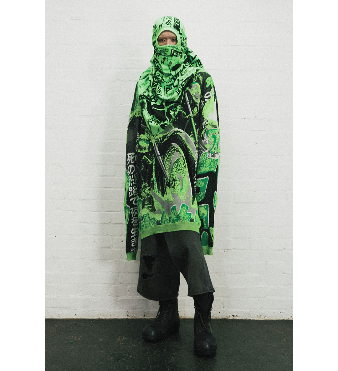 LU'U DAN MISFIT JACQUARD JUMPER ACID GREEN/BLACK