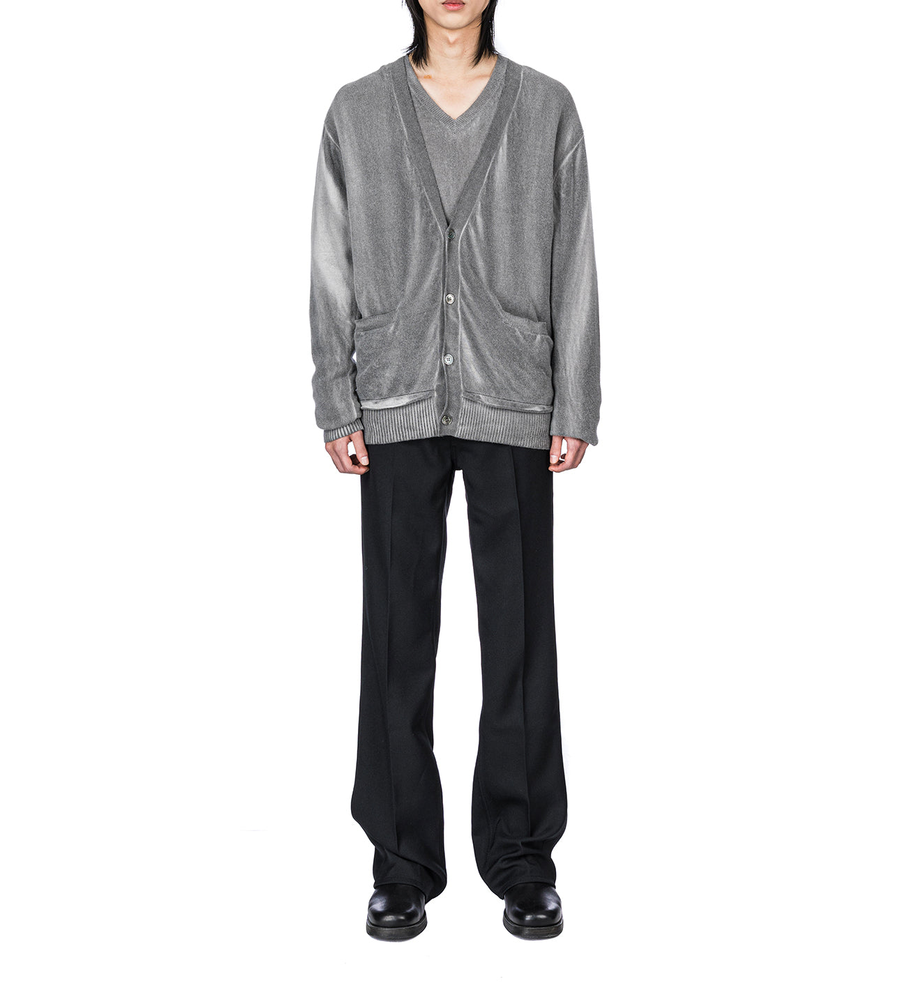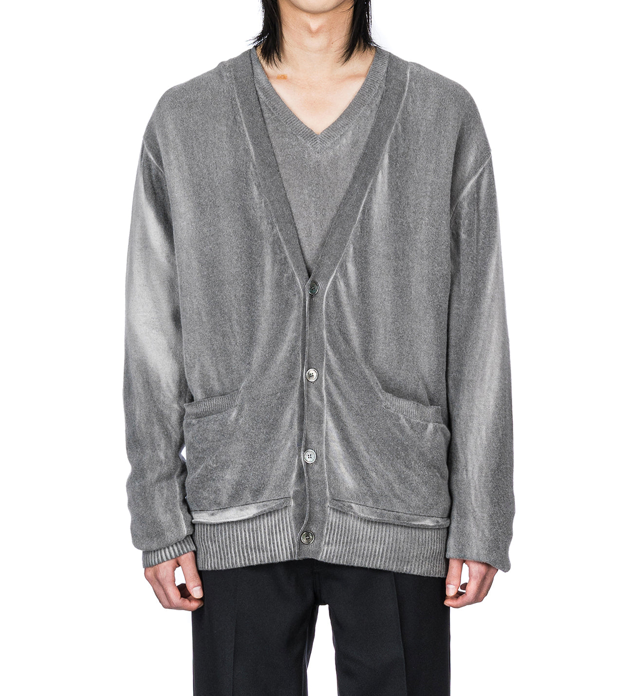 PARALLEL CARDIGAN GREY SPRAY DYE CHERUB WOOL