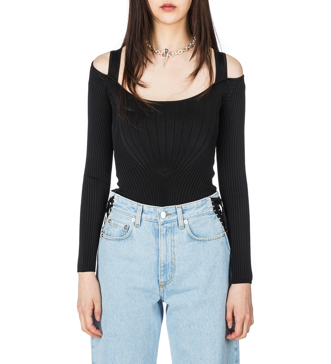 MUGLER RIB LONG SLEEVE BODYSUIT BLACK