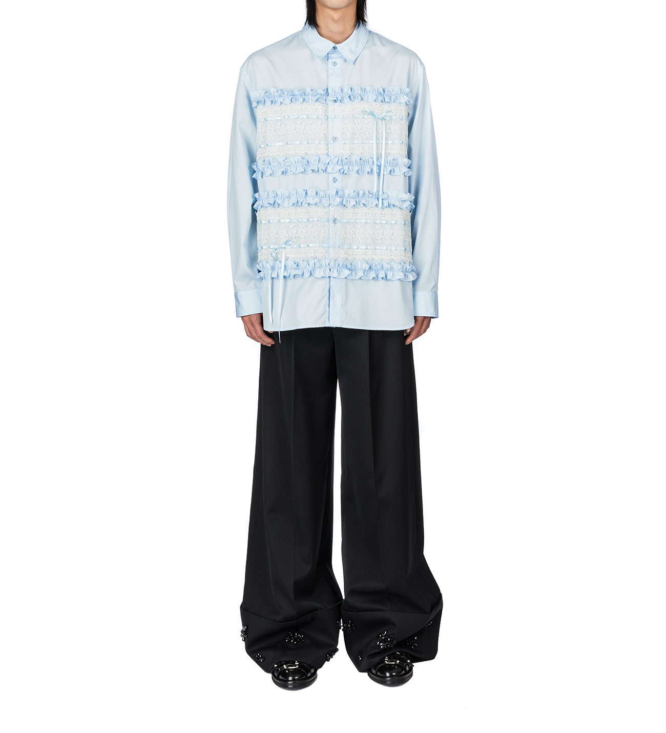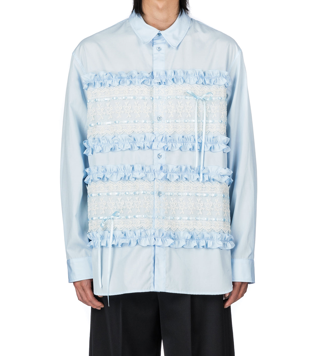 SIMONE ROCHA RIBBON TRIM EASY SHIRT BABY BLUE/CREAM
