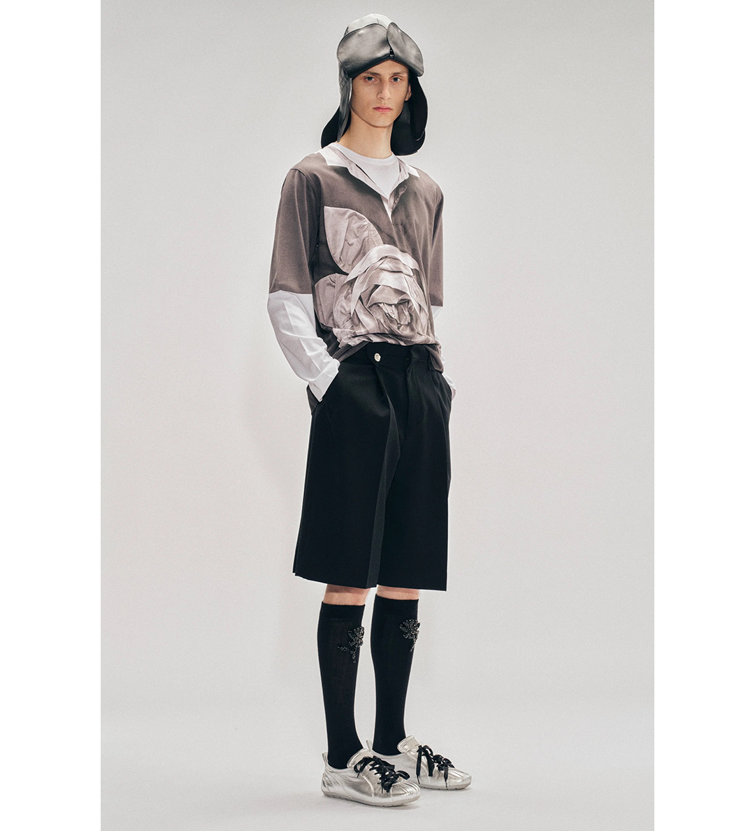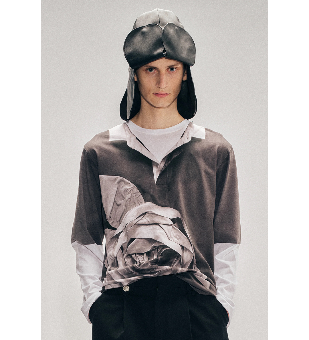 SIMONE ROCHA ROSE RUGBY TROMPE L'OEIL PRINT LONG SLEEVE T-SHIRT WHITE