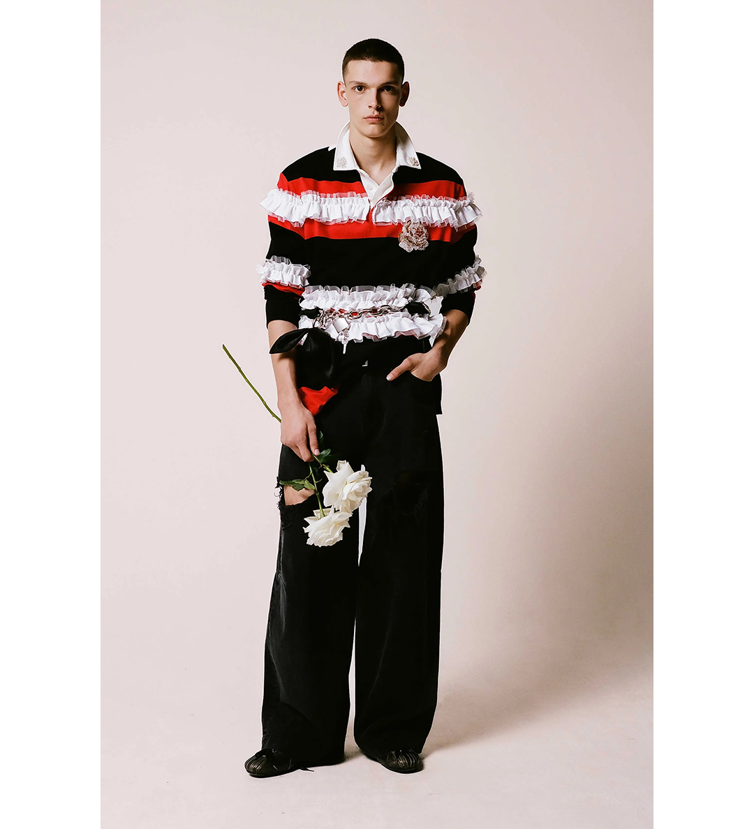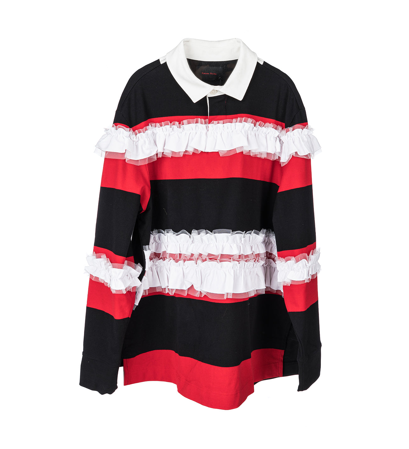 SIMONE ROCHA RUFFLE RUGBY SHIRT RED MULTI