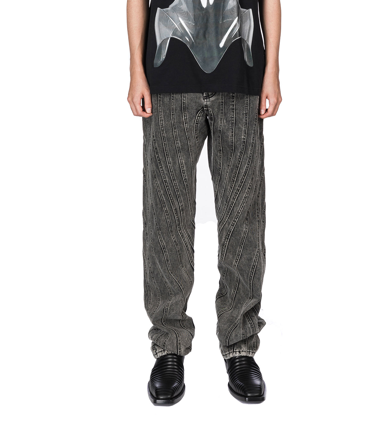 MUGLER SPIRAL BAGGY JEANS WASHED BLACK