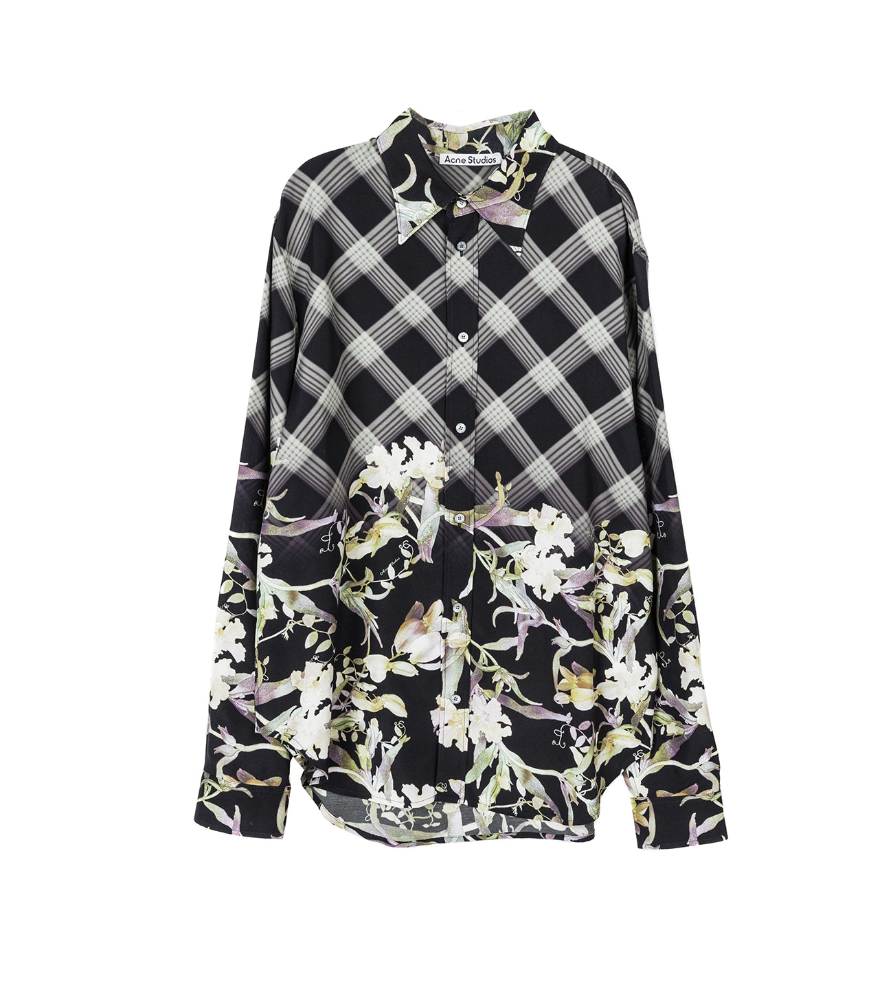 ACNE STUDIOS SURRI LS VISCOSE FLOWER CHECK PRINT NAVY MULTI