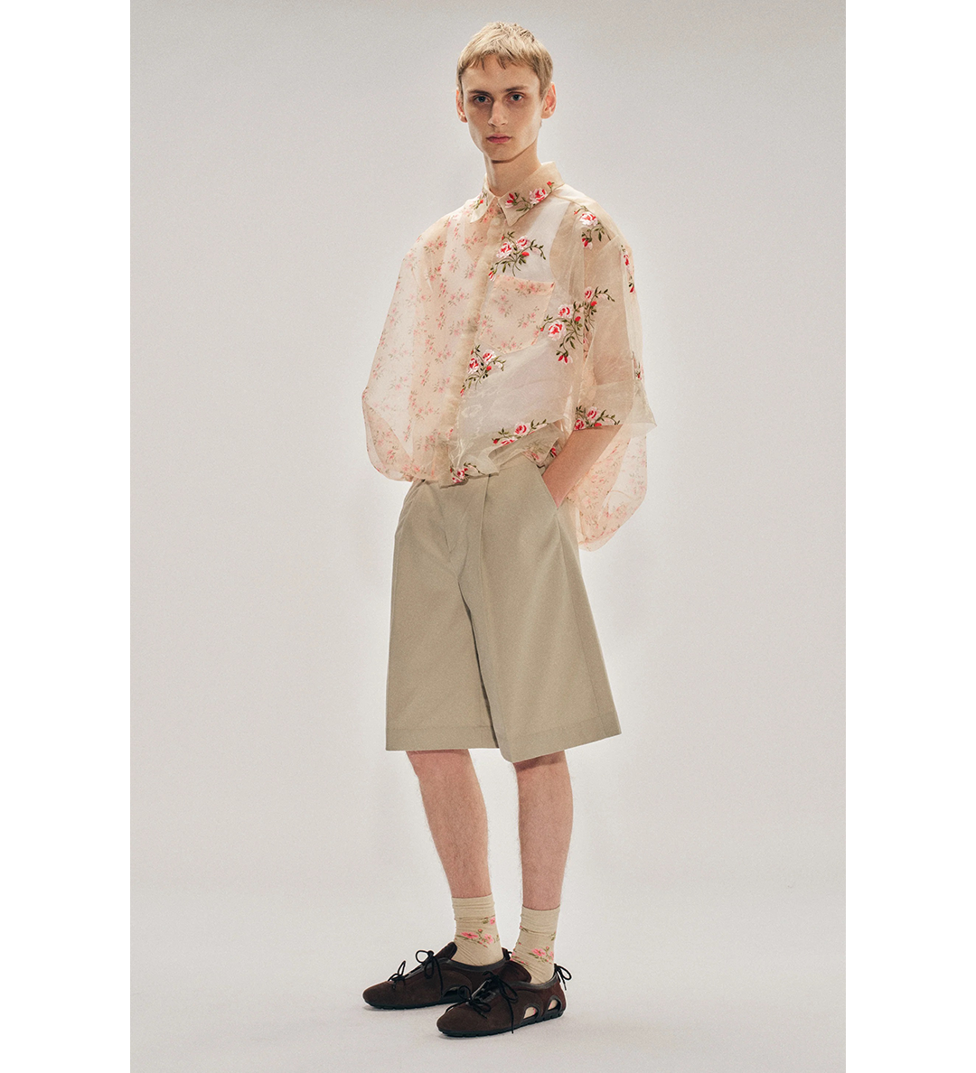 SIMONE ROCHA TAILORED WIDE LEG BELT LOOP TAB SHORTS W/DAISY SAND