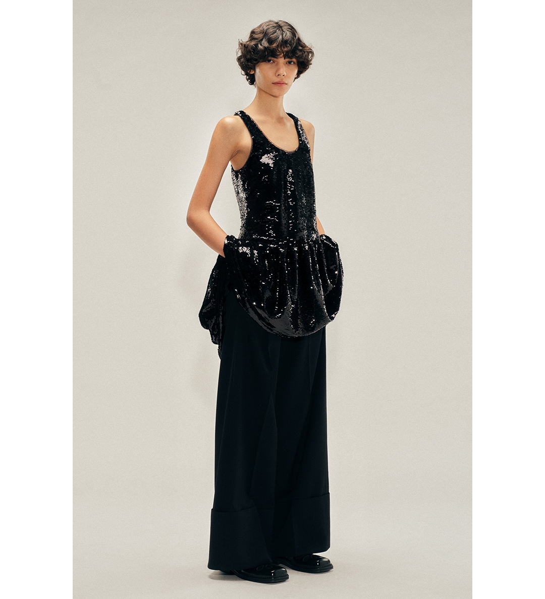 SIMONE ROCHA TAPERED BACK PEPLUM MINI DRESS BLACK