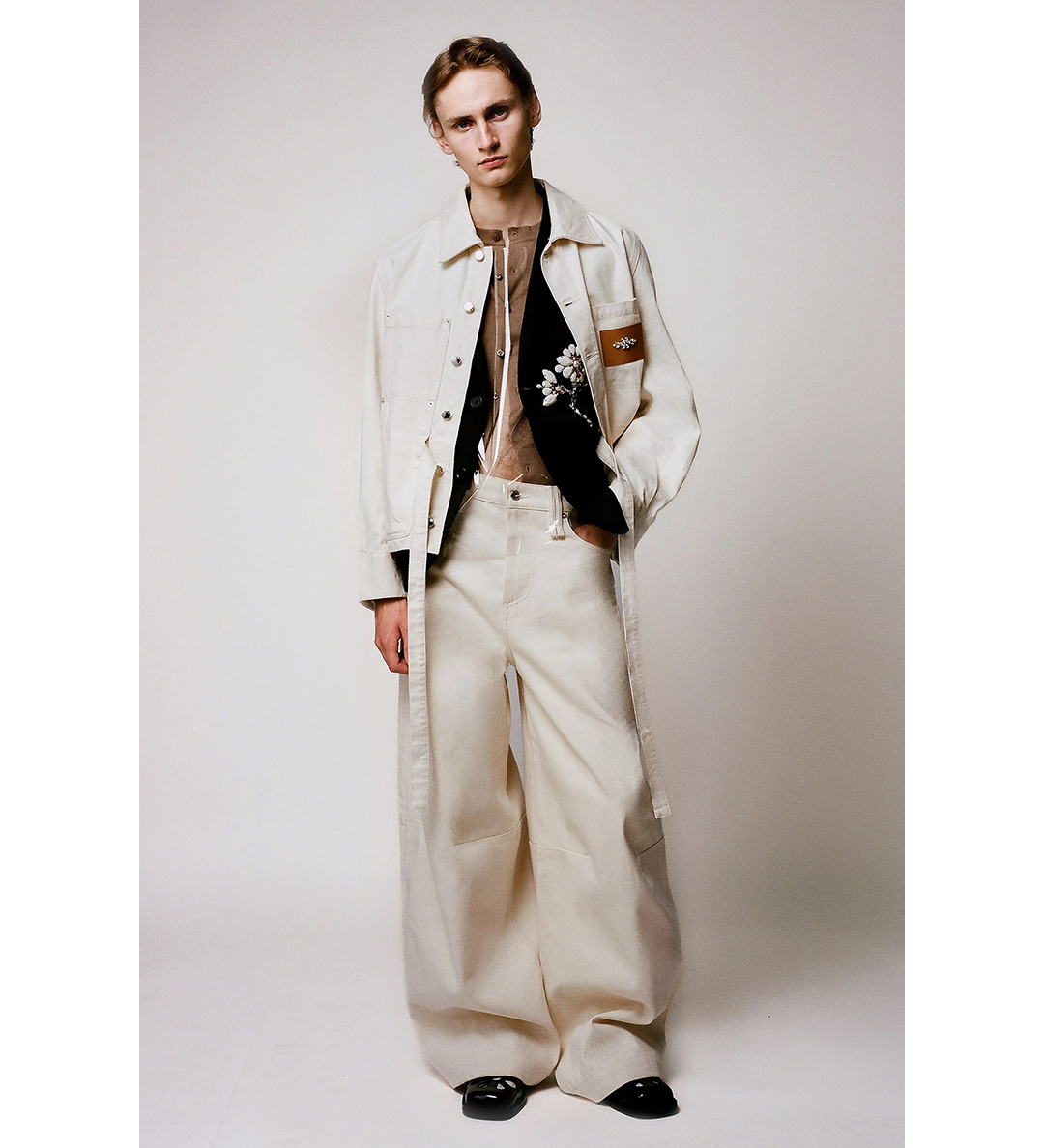 SIMONE ROCHA WIDE LEG PUDDLE BOW LOOP JEANS ECRU