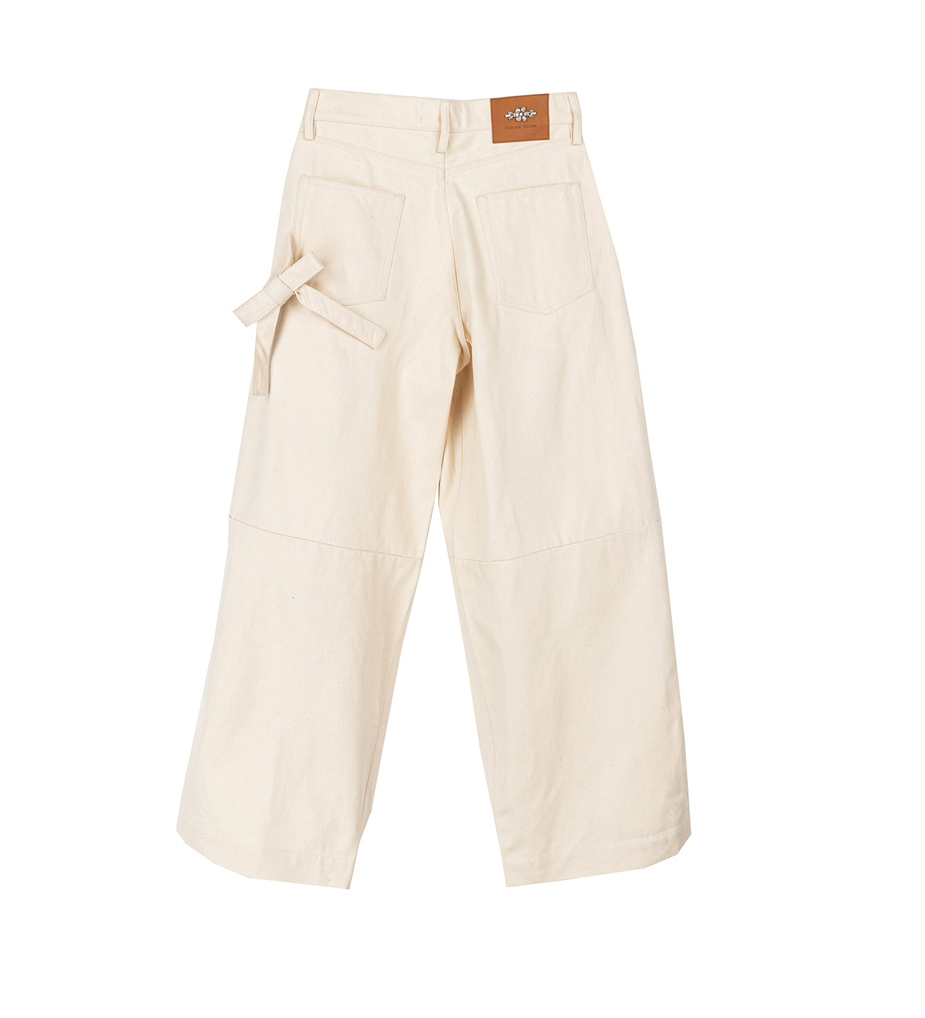 WIDE LEG PUDDLE BOW LOOP JEANS ECRU